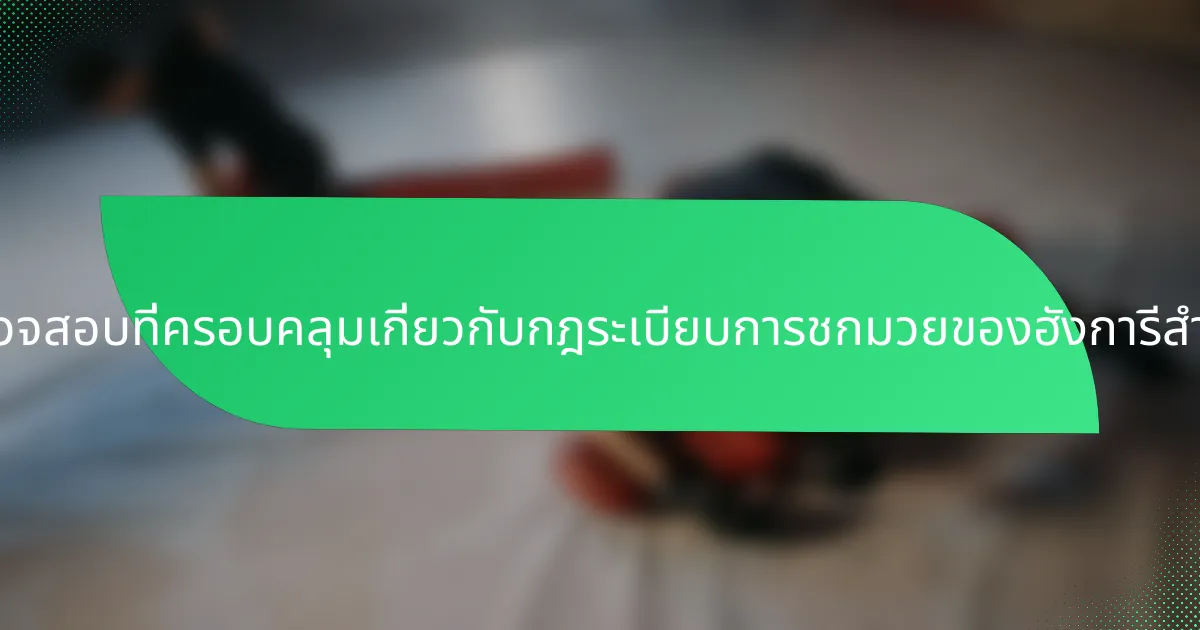 กฎระเบียบการชกมวยของฮังการีสำหรับนักชกมีความสำคัญต่อการรักษาสภาพแวดล้อมการแข่งขันที่ปลอดภัยและยุติธรรม กฎเหล่านี้ครอบคลุมหลายด้าน รวมถึงขั้นตอนการออกใบอนุญาต, หมวดน้ำหนัก, มาตรการด้านความปลอดภัย และเกณฑ์การตัดสิน ความคุ้นเคยกับกฎระเบียบเหล่านี้เป็นสิ่งสำคัญสำหรับผู้เข้าร่วมทุกคนเพื่อให้แน่ใจว่าปฏิบัติตามและรักษาความซื่อสัตย์ของกีฬา